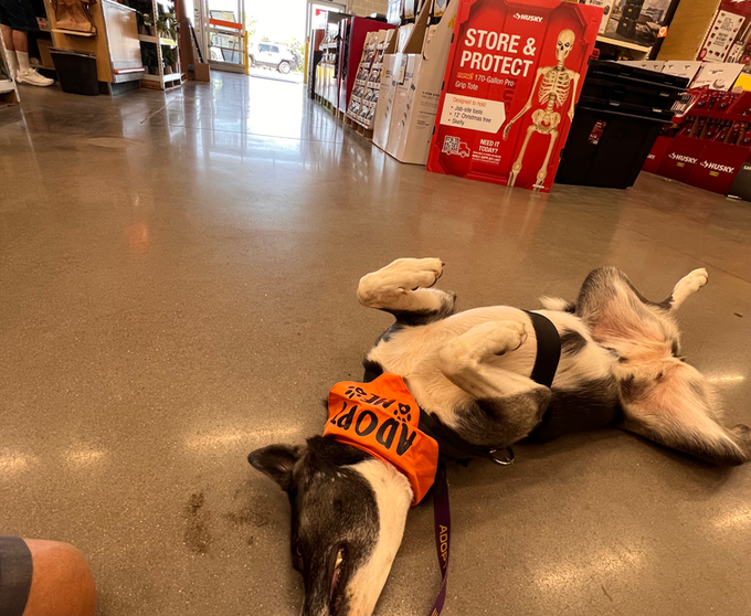 Sarabi is a nimble and elegant gal, always ready to tackle the day's activities. She thrives on outdoor stimulation but knows when it's time to cool down. Doesn't mind having her own independent time when the moment calls for it! Sarabi adores belly rubs, often flopping on her back to show off her cute overbite. While she's not particularly interested in toys, she enjoys daily walks to stay happy and healthy, sweetly greeting every passerby. We've also noticed an affinity with smaller dogs in particular and prefers to be paired up with them. We encourage anyone looking for a friend for their little to consider Sarabi, even if it seems so unlikely! After being a dedicated mom to her puppies, Sarabi is ready for a new chapter in a home where she can be doted instead. Her active lifestyle and loving, steadfast personality make her the perfect partner for anyone looking for a companion to keep up with them without fail!
